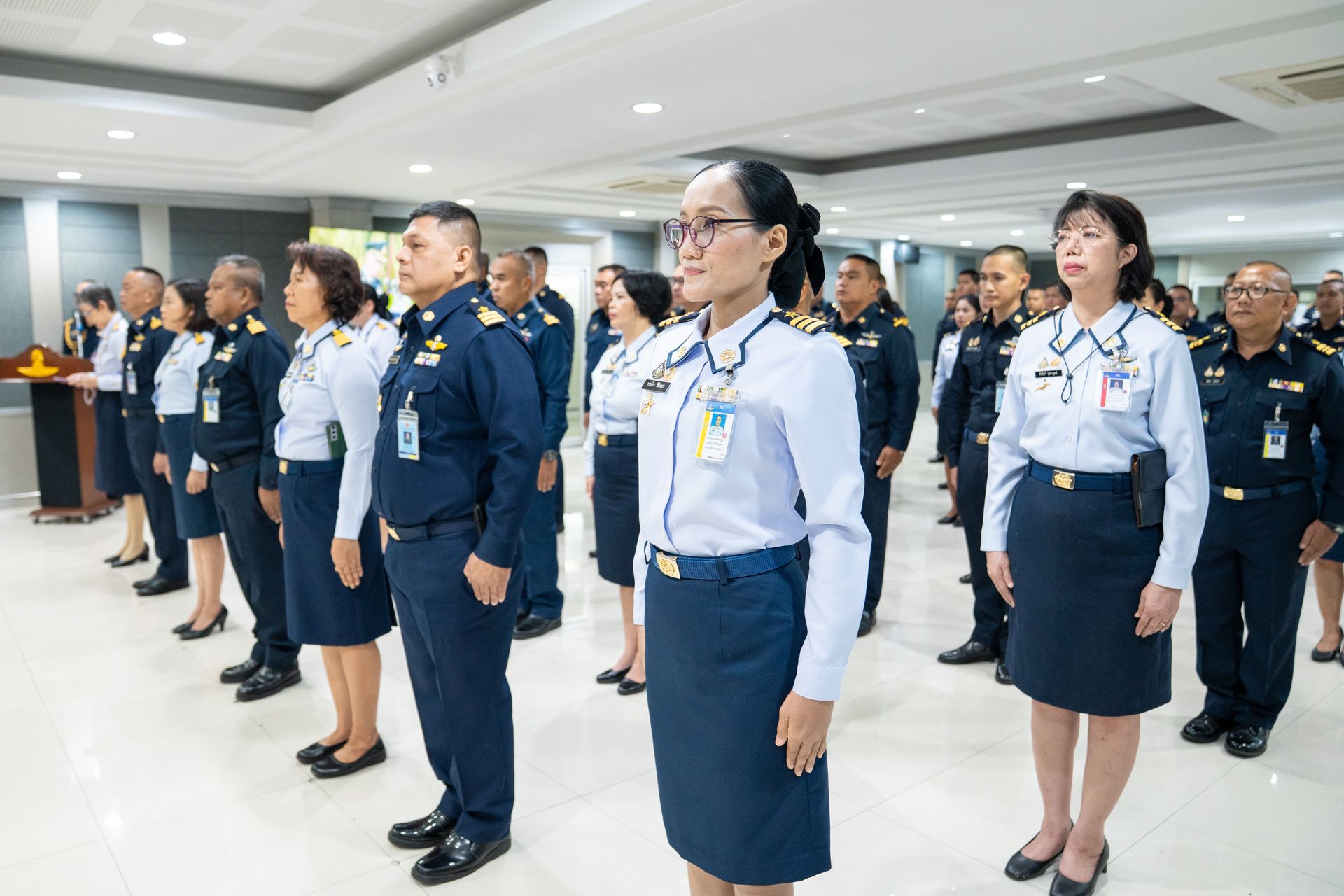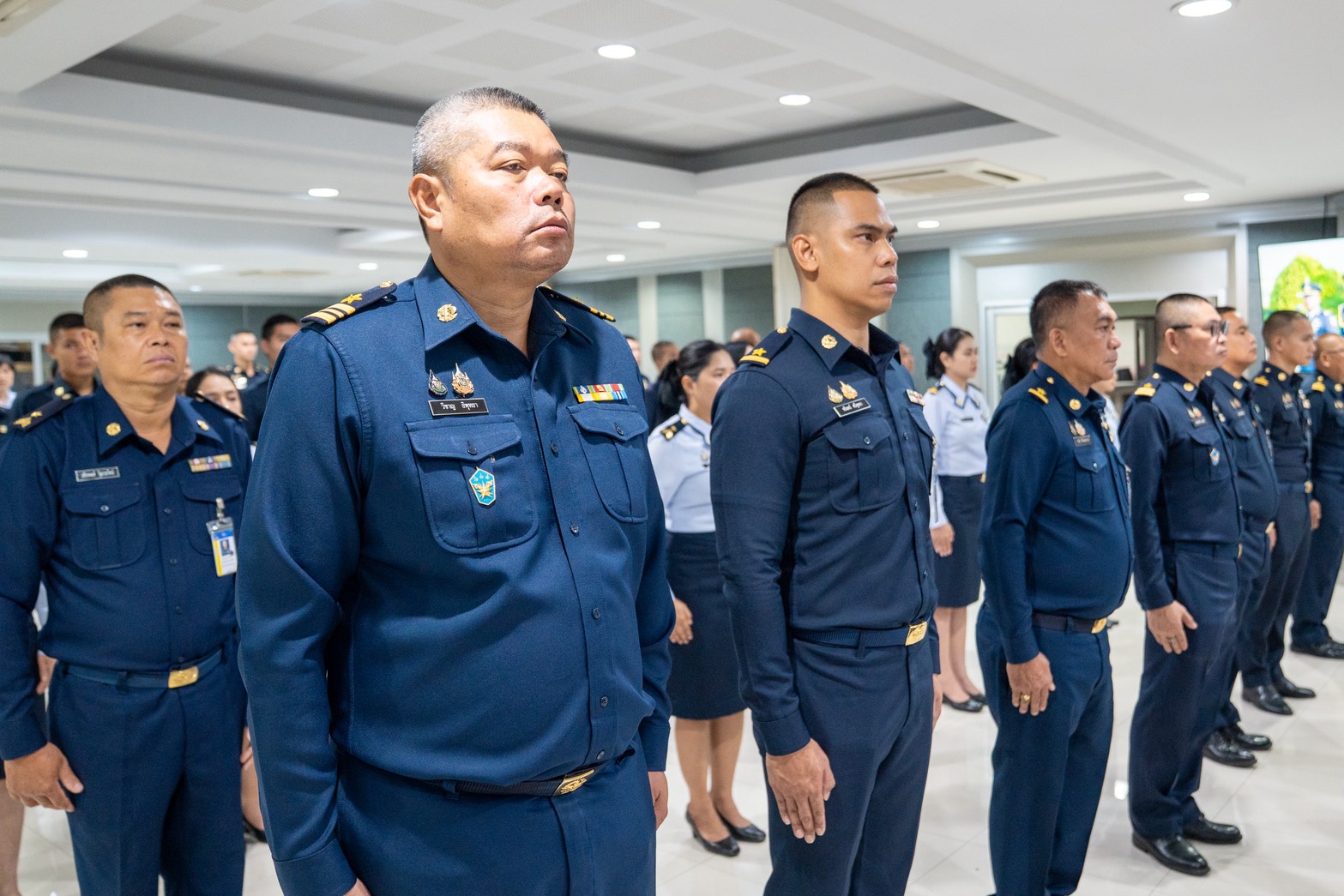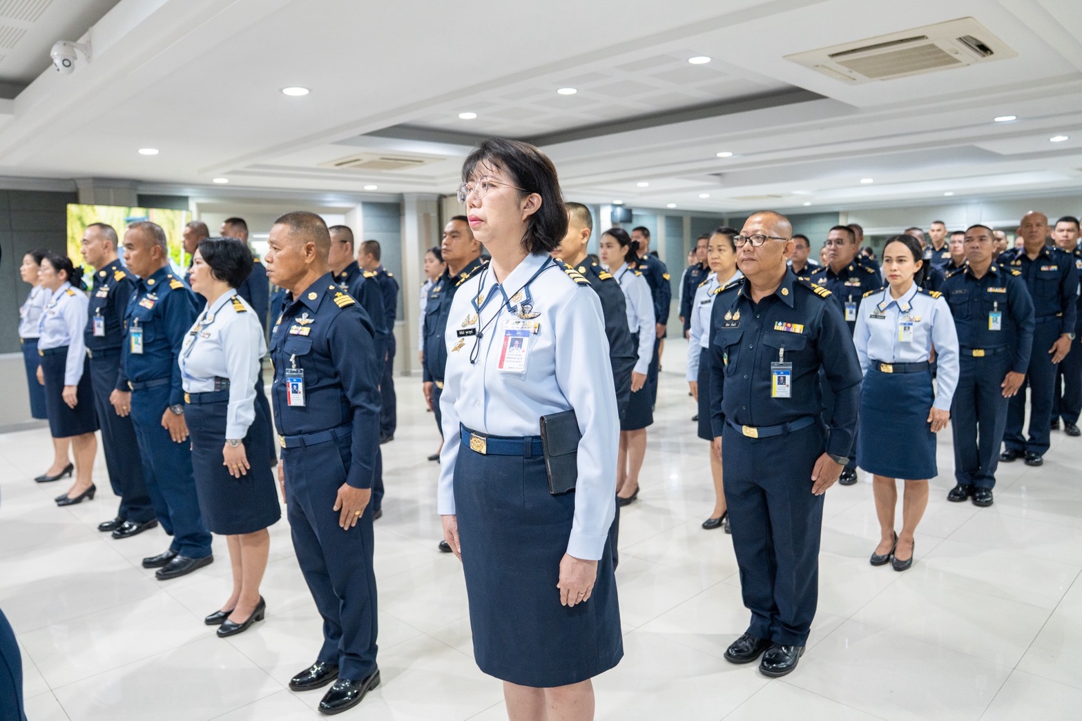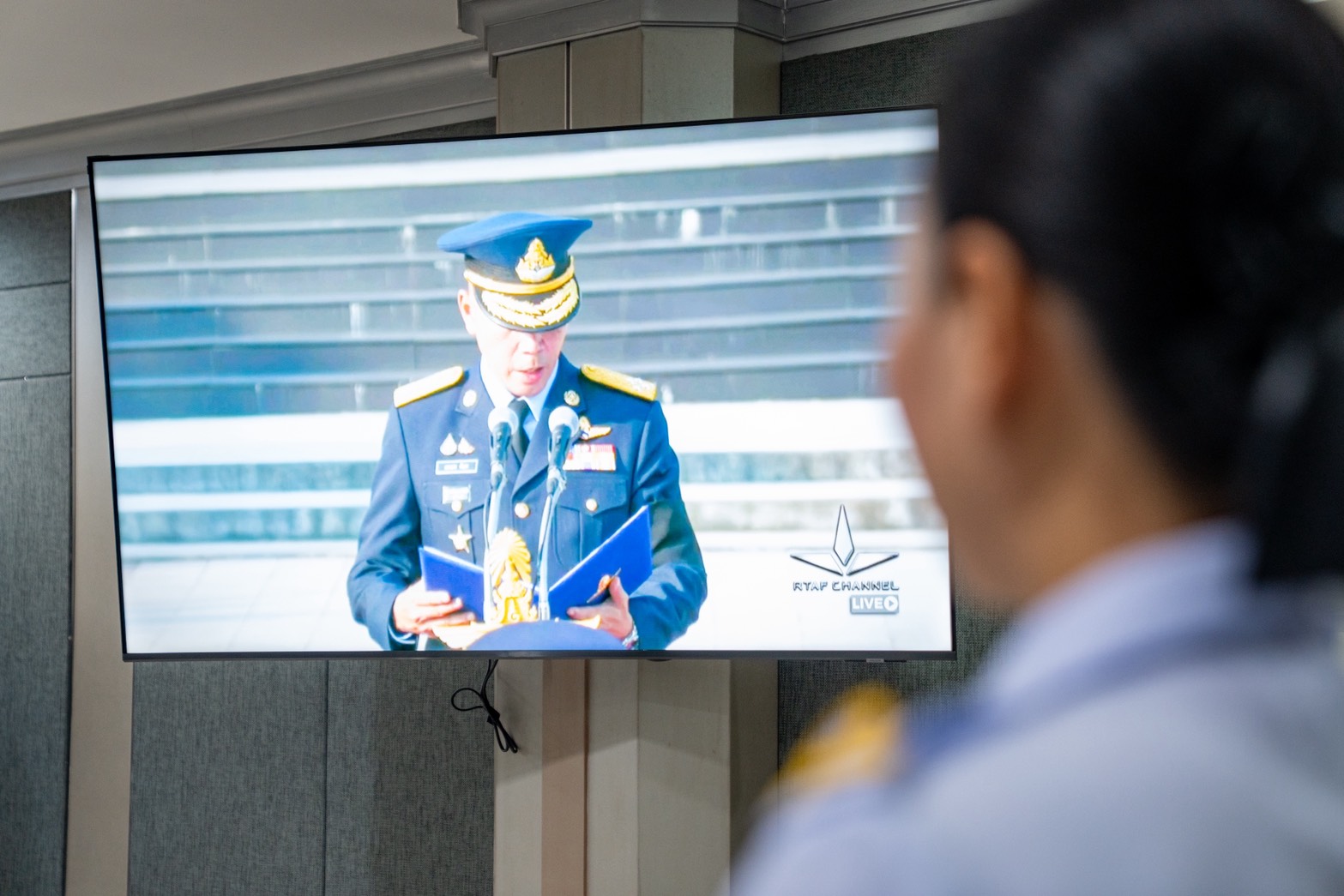 น.อ.นรัญจ์ หิญชีระนันทน์ รอง เสธ.อย.(กพ., กบ.) นำกำลังพล บก.อย.ฟังสารของ ผบ.ทอ.เนื่องในวันกองทัพอากาศ ผ่านระบบส่งสัญญาณโทรทัศน์ผ่านดาวเทียม (Cable TV )โดยมี ข้าราชการ ลูกจ้างและพนักงานราชการหน่วยบัญชาการอากาศโยธิน เข้าร่วมพิธีฟังสารฯ เมื่อ ๙ เม.ย.๖๙ ณ ห้องประชุม อย.(๒)