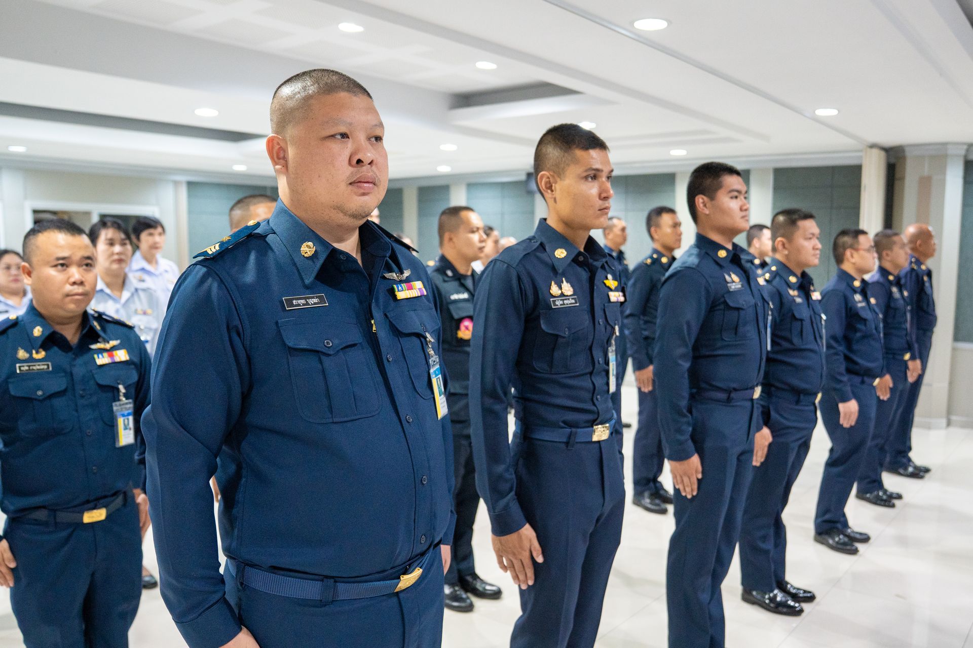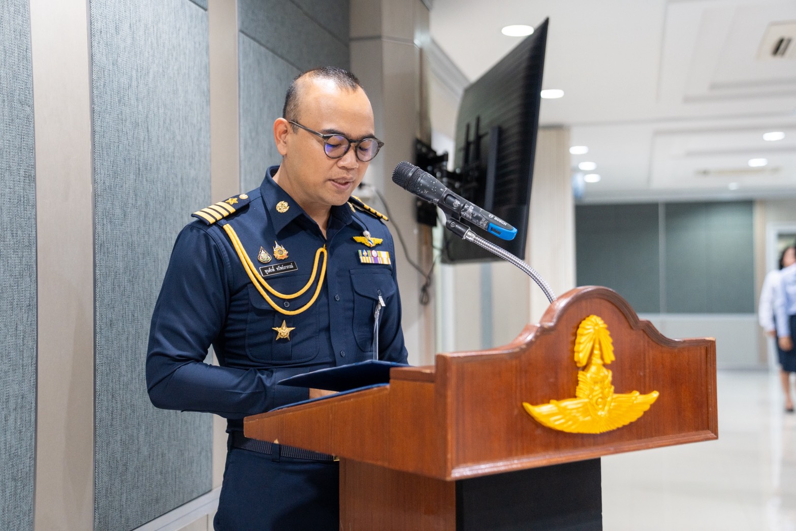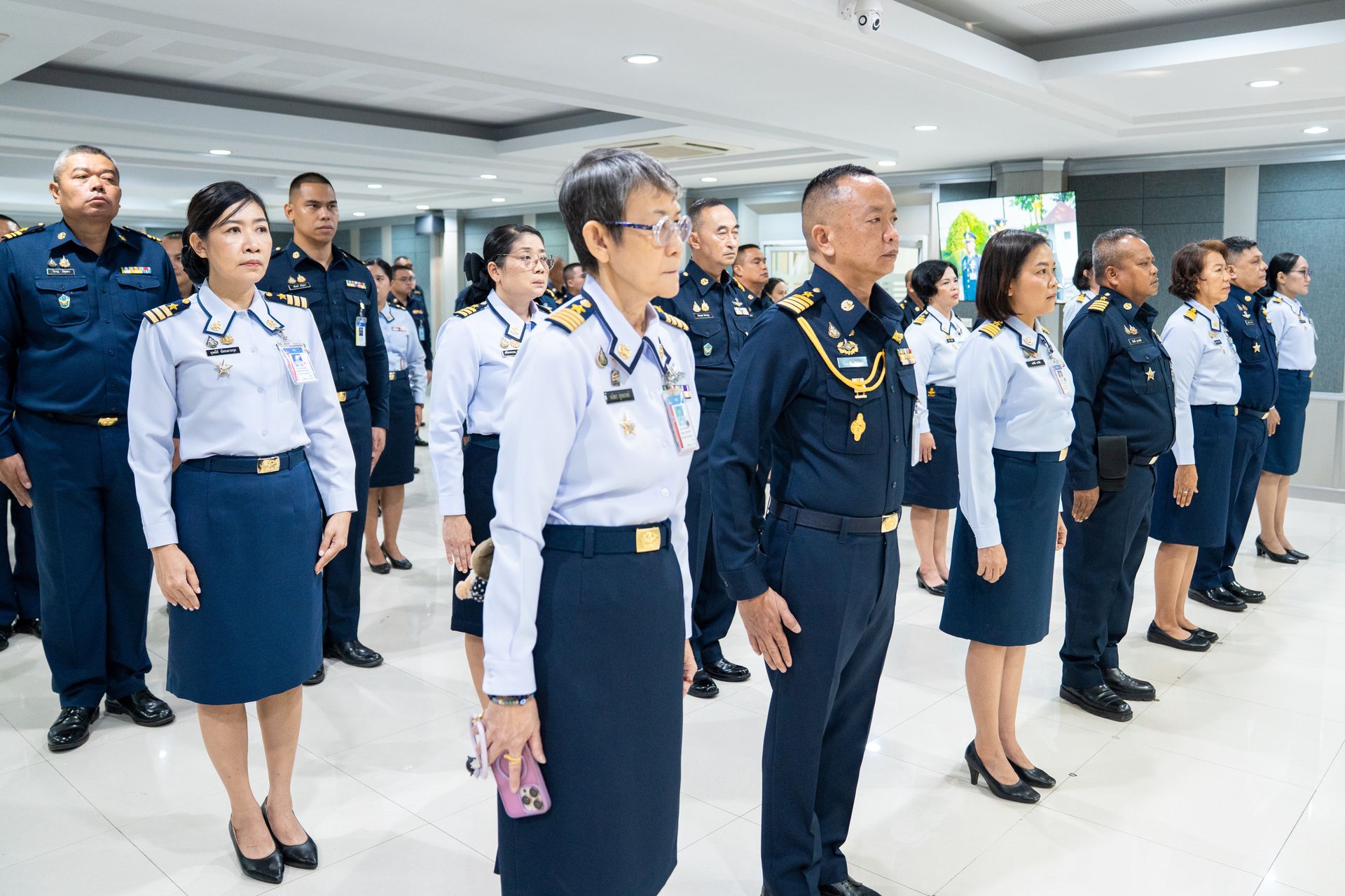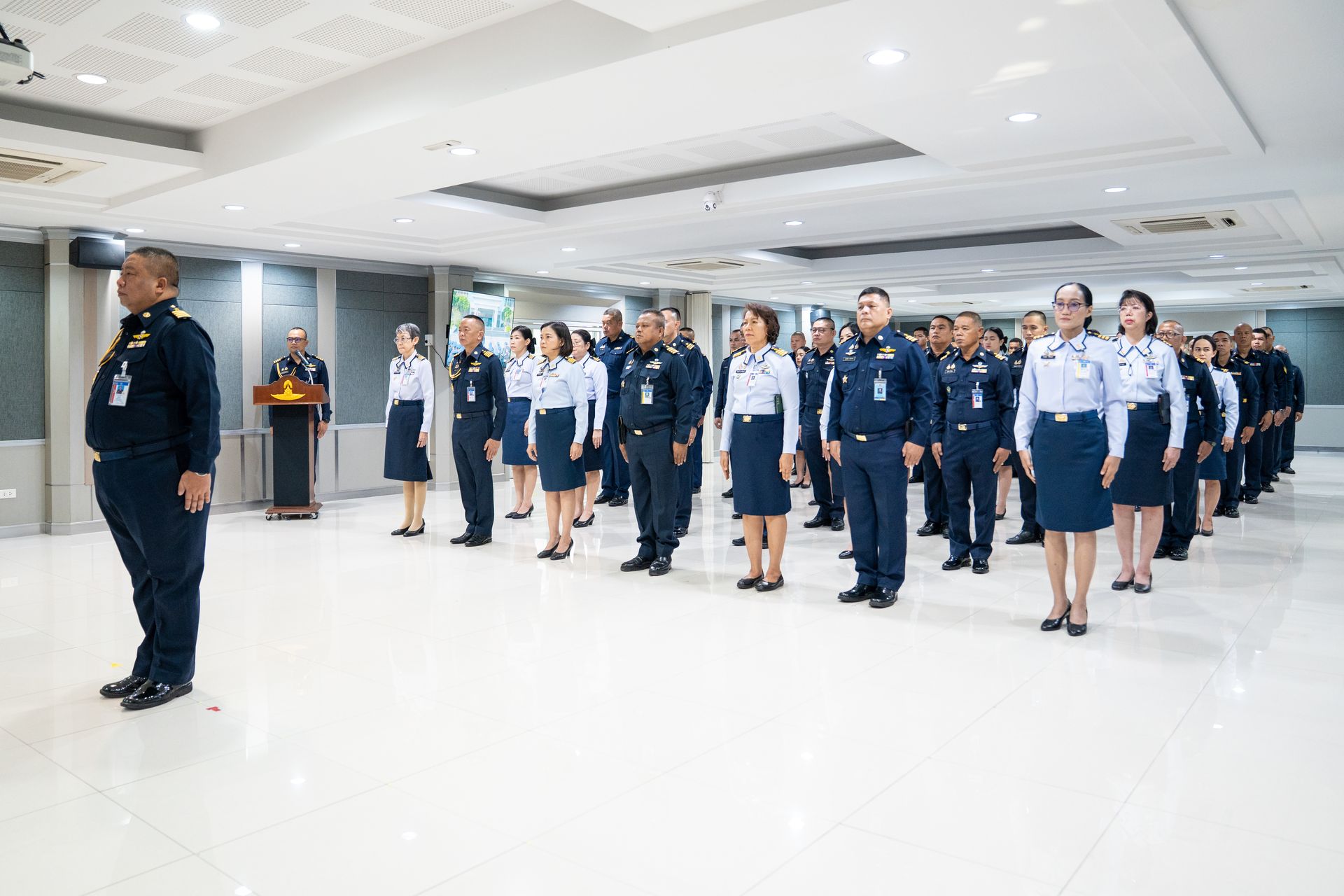 น.อ.นรัญจ์ หิญชีระนันทน์ รอง เสธ.อย.(กพ., กบ.) นำกำลังพล บก.อย.ฟังสารของ ผบ.ทอ.เนื่องในวันกองทัพอากาศ ผ่านระบบส่งสัญญาณโทรทัศน์ผ่านดาวเทียม (Cable TV )โดยมี ข้าราชการ ลูกจ้างและพนักงานราชการหน่วยบัญชาการอากาศโยธิน เข้าร่วมพิธีฟังสารฯ เมื่อ ๙ เม.ย.๖๙ ณ ห้องประชุม อย.(๒)