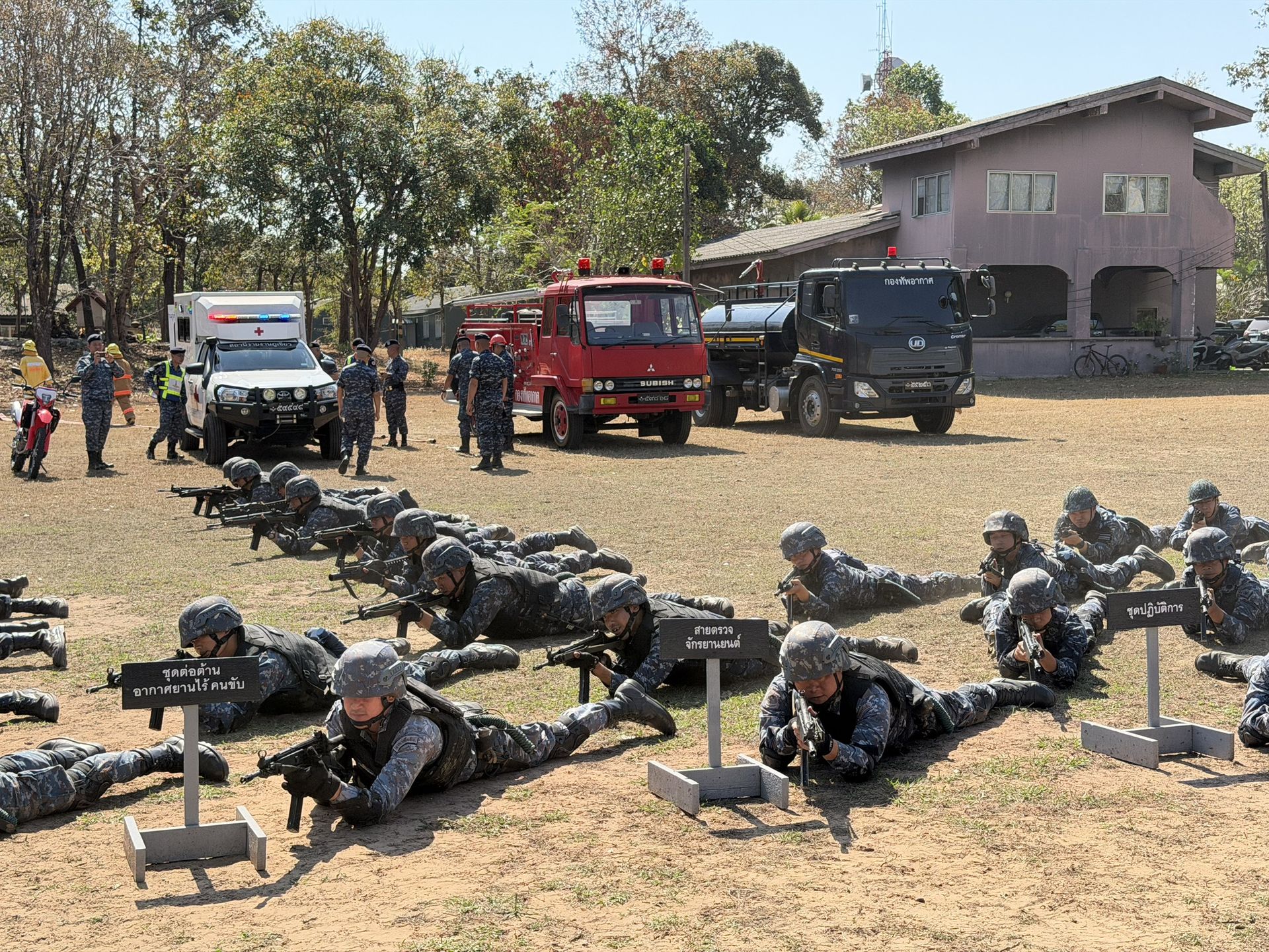 พลอากาศตรี มณเฑียร หมีโชติ รองผู้บัญชาการหน่วยบัญชาการอากาศโยธิน เป็นประธานคณะตรวจสอบความพร้อมรบและทดสอบแผนป้องกันที่ตั้งหน่วยกองทัพอากาศในสนาม ณ สถานีรายงานภูเขียว