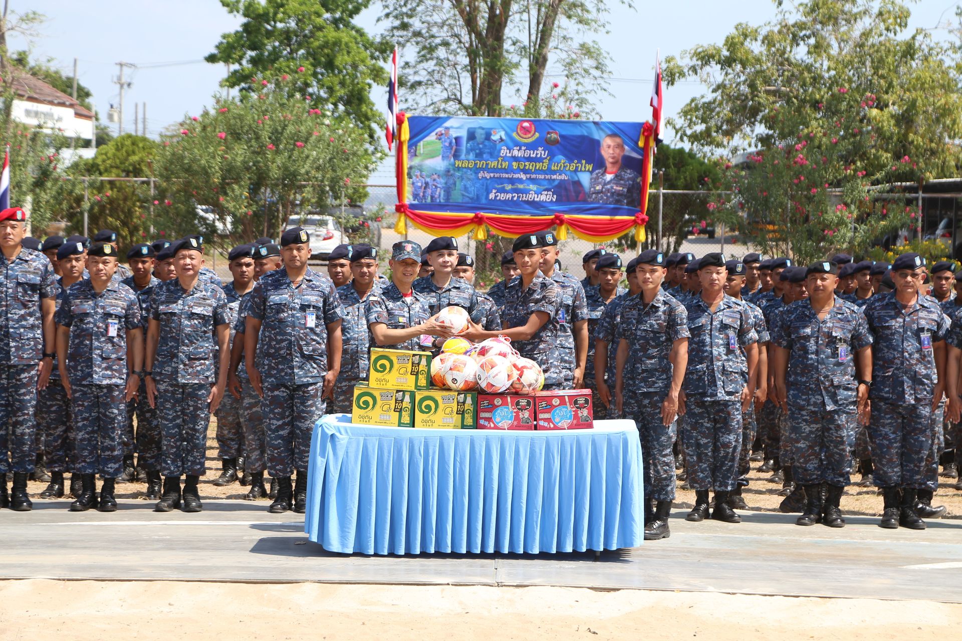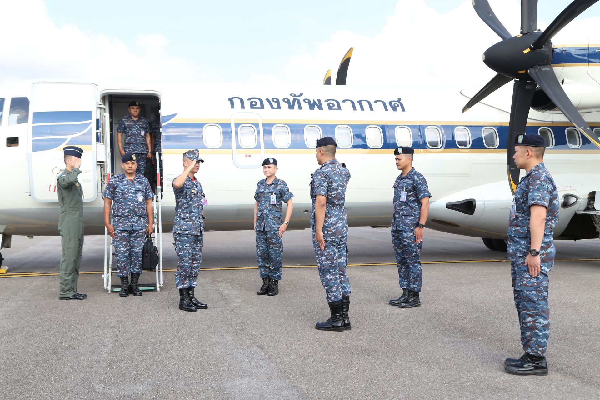 โดยมี นาวาอากาศเอก รัตนศักดิ์ โพธิ์แก้ว ผู้บังคับการกองบิน ๕ พร้อมด้วยข้าราชการ และ นาวาอากาศโท กันตินันท์ ประดับมุข ผู้บังคับกองพันทหารอากาศโยธิน กองบิน ๕ ให้การต้อนรับ