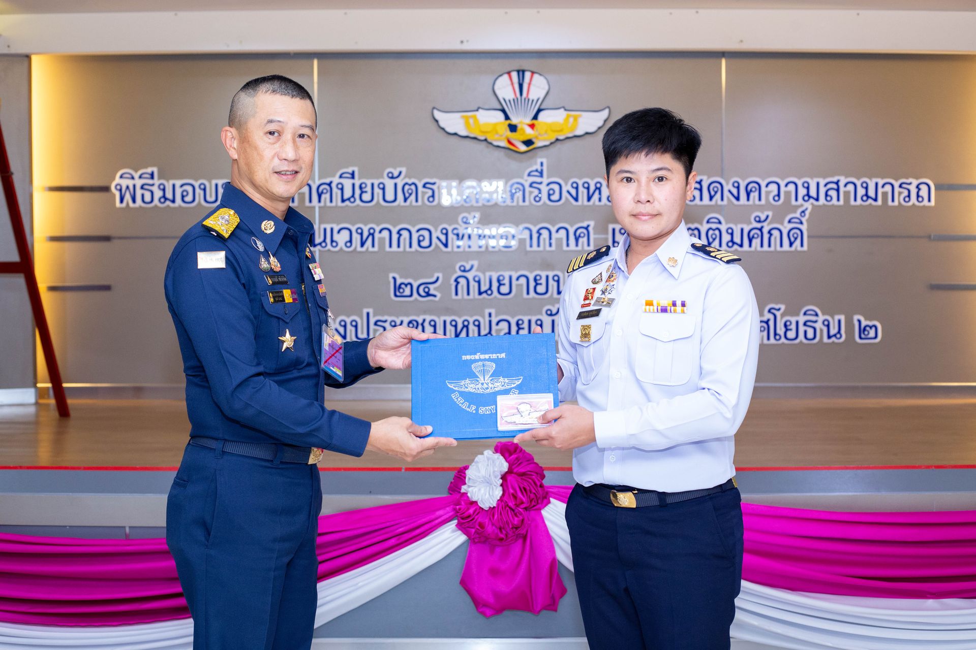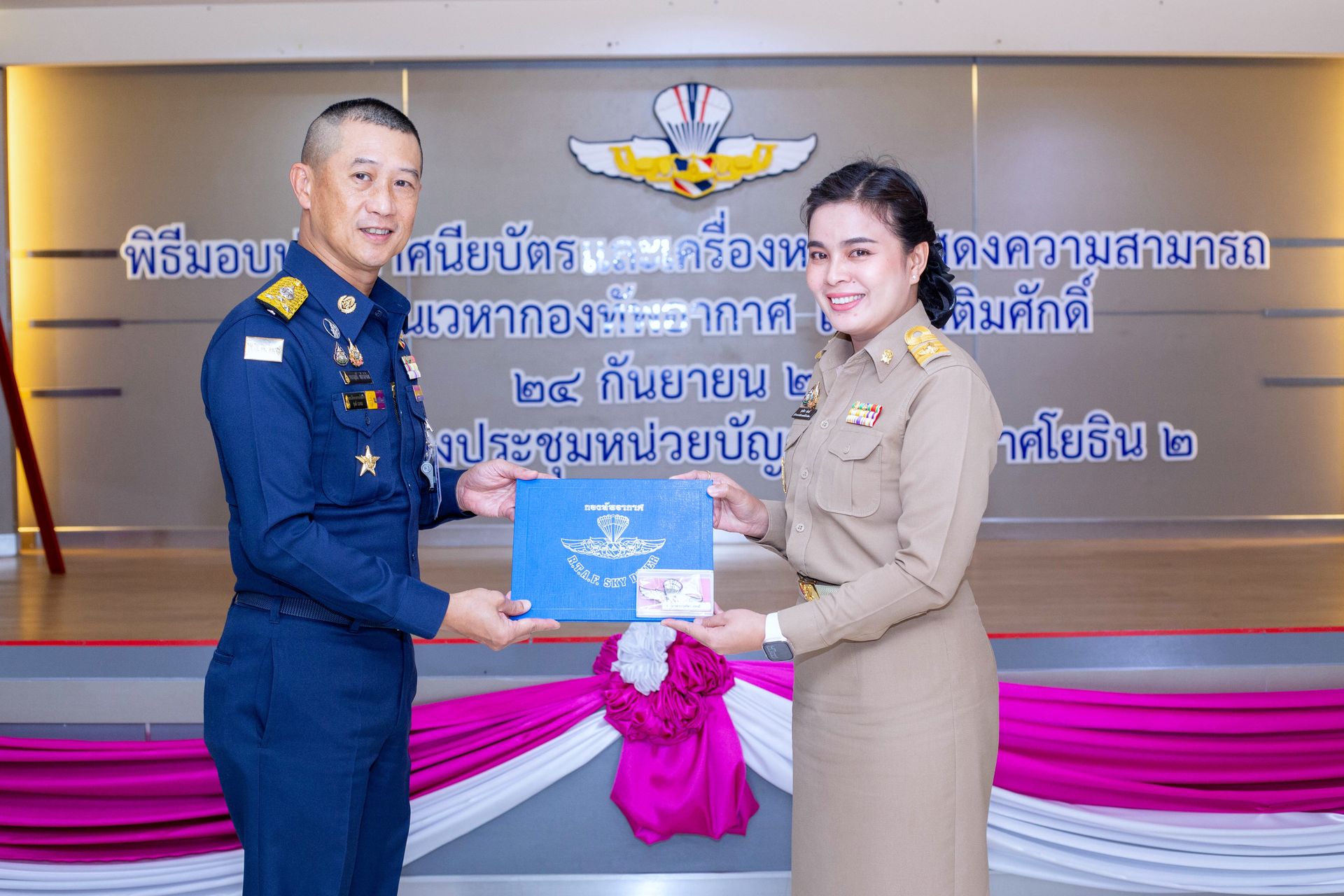 พลอากาศโท ขจรฤทธิ์ แก้วอำไพ ผู้บัญชาการหน่วยบัญชาการอากาศโยธิน เป็นประธานในพิธีมอบเครื่องหมายแสดงความสามารถนักเหินเวหากองทัพอากาศเป็นกิตติมศักดิ์ ให้แก่ คณะบุคคลผู้ทำคุณประโยชน์ให้กับกองทัพอากาศ เมื่อวันที่ 24 กันยายน 2568 ณ ห้องประชุมหน่วยบัญชาการอากาศโยธิน(2)