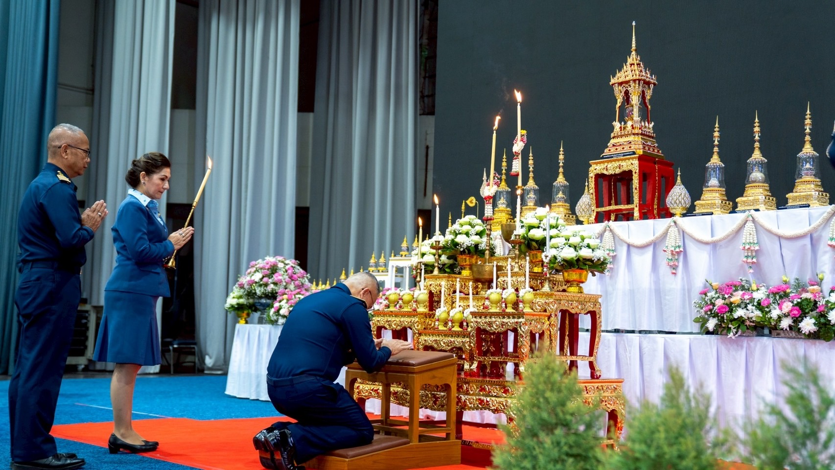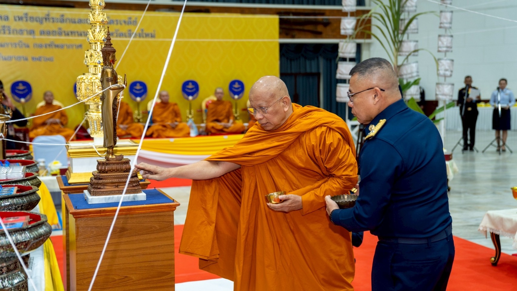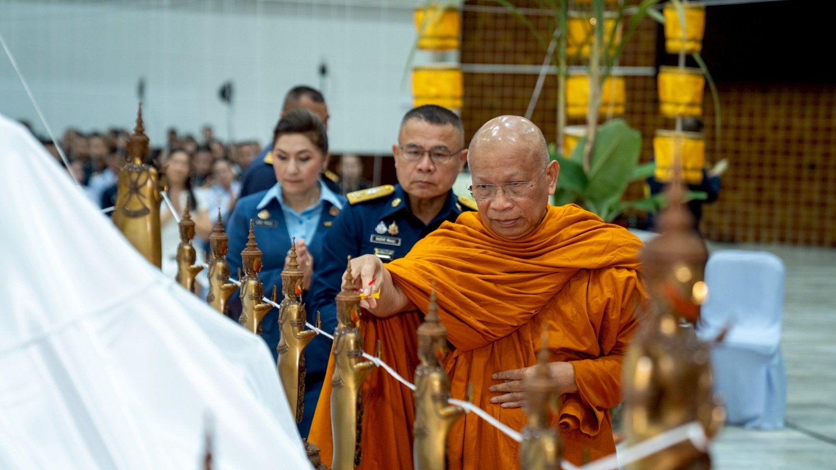 พลอากาศโท ขจรฤทธิ์ แก้วอำไพ ผู้บัญชาการหน่วยบัญชาการอากาศโยธิน ร่วมพิธีพุทธาภิเษก พระพุทธนภาวชิรมงคล เหรียญที่ระลึก และยอดฉัตรเจดีย์ ในโครงการสร้างพระสถูปเจดีย์บรรจุพระบรมสารีริกธาตุ ดอยอินทนนท์ จังหวัดเชียงใหม่ เมื่อวันที่ ๑๑ กันยายน ๒๕๖๘ ณ อาคารรณนภากาศ อุทยานการบิน ทอ.