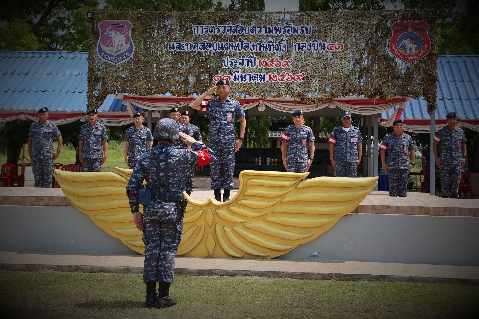 โดยมี นาวาอากาศเอก ธีระยุทธ เกื้อสกุล ผู้บังคับการกองบิน ๔๑ พร้อมด้วยหัวหน้าหน่วยขึ้นตรงกองบิน ๔๑ ข้าราชการ และนาวาอากาศโท อรรถพร อุตสาห์ปัน ผู้บังคับกองพันทหารอากาศโยธินกองบิน ๔๑ ร่วมให้การต้อนรับ และนำกำลังพลเข้ารับการตรวจสอบฯ