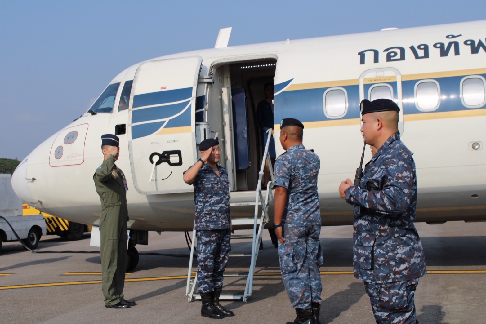โดยมี นาวาอากาศเอก ธรรมนูญ คำสุข ผู้บังคับการกรมทหารต่อสู้อากาศยาน หน่วยบัญชาการอากาศโยธิน และ นาวาอากาศเอก ณัฐวุฒิ จันทรจิต รองผู้บังคับการกองบิน ๕ ให้การต้อนรับ