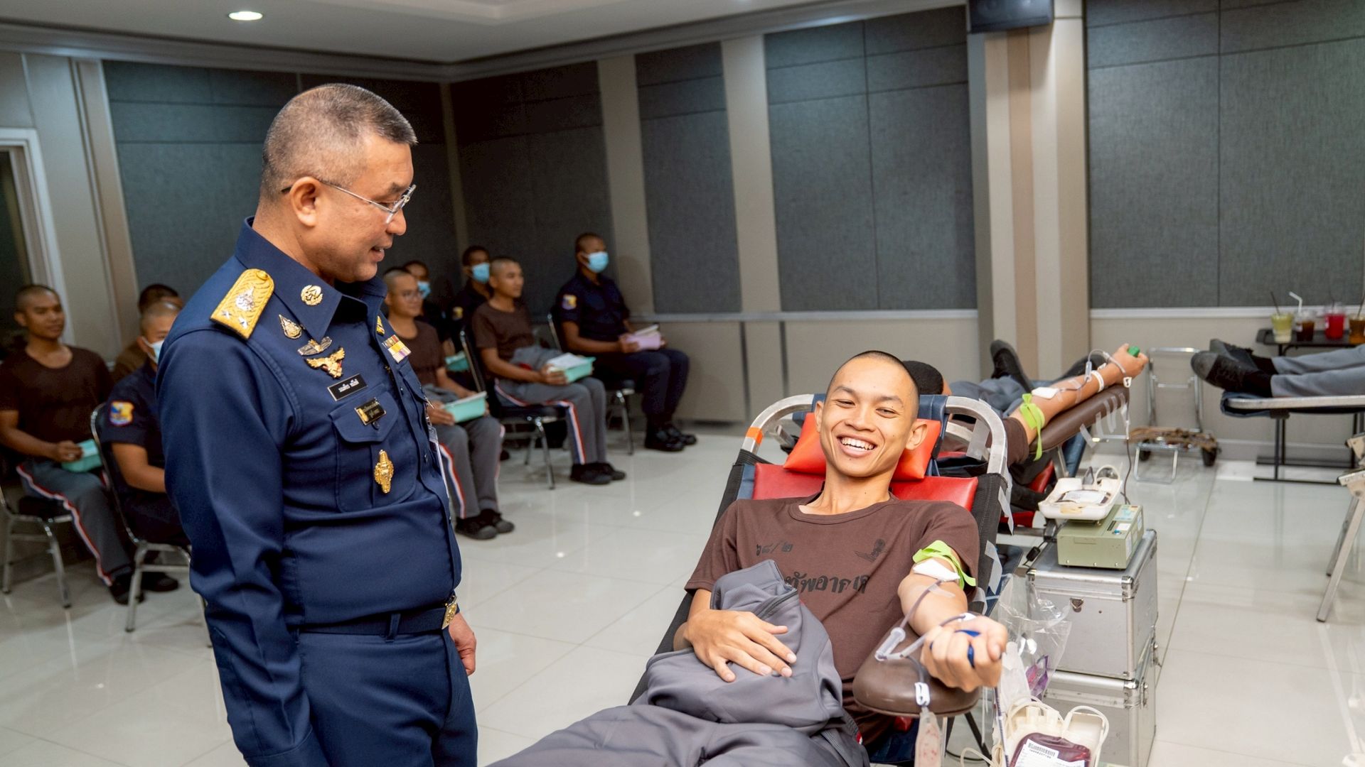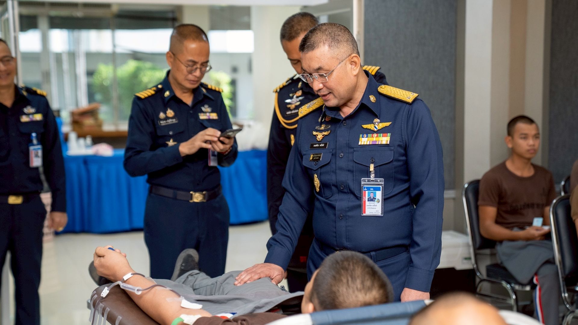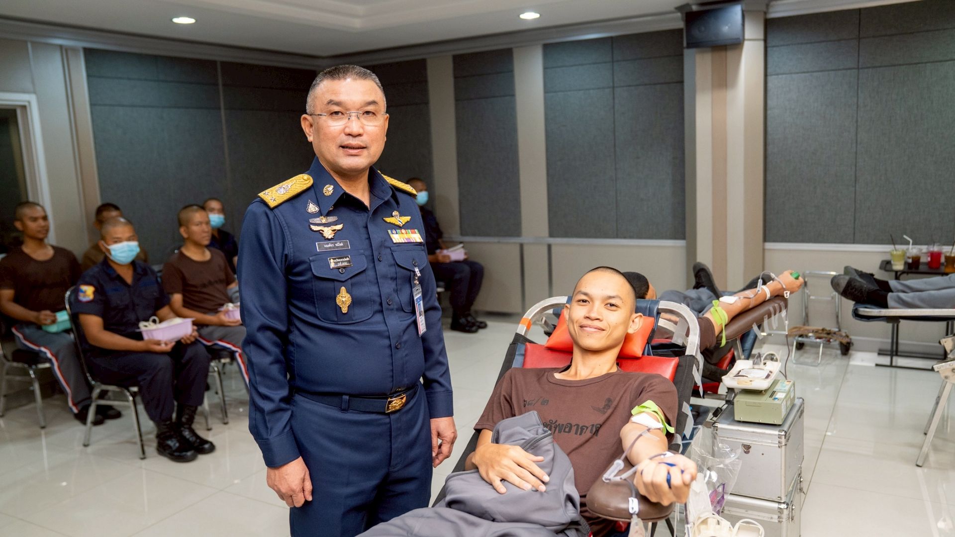 พลอากาศตรี มณเฑียร หมีโชติ รองผู้บัญชาการหน่วยบัญชาการอากาศโยธิน นำข้าราชการและทหารกองประจำการ สังกัด หน่วยบัญชาการอากาศโยธิน ร่วมบริจาคโลหิตเพื่อถวายเป็นพระราชกุศล เนื่องในโอกาสวันคล้ายวันพระบรมราชสมภพ ของพระบาทสมเด็จพระบรมชนกาธิเบศร มหาภูมิพลอดุลยเดชมหาราช บรมนาถบพิตร, วันชาติ และวันพ่อแห่งชาติ ๕ ธันวาคม ๒๕๖๘