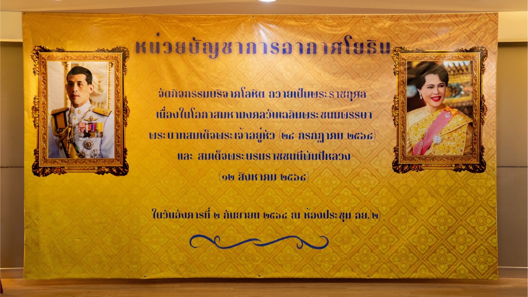 พลอากาศตรี พันเทพ เนียมพลอย รองผู้หน่วยบัญชาการหน่วยบัญชาการอากาศโยธิน นำข้าราชการ ลูกจ้าง พนักงานราชการและทหารกองประจำการร่วมบริจาคโลหิต เพื่อถวายเป็นพระราชกุศลแด่พระบาทสมเด็จพระเจ้าอยู่หัว เนื่องในโอกาสวันเฉลิมพระชนมพรรษา ๒๘ กรกฎาคม ๒๕๖๘ และเฉลิมพระเกียรติสมเด็จพระนางเจ้าสิริกิติ์ พระบรมราชินีนาถ พระบรมราชชนนีพันปีหลวง เนื่องในโอกาสวันเฉลิมพระชนมพรรษา ๑๒ สิงหาคม ๒๕๖๘