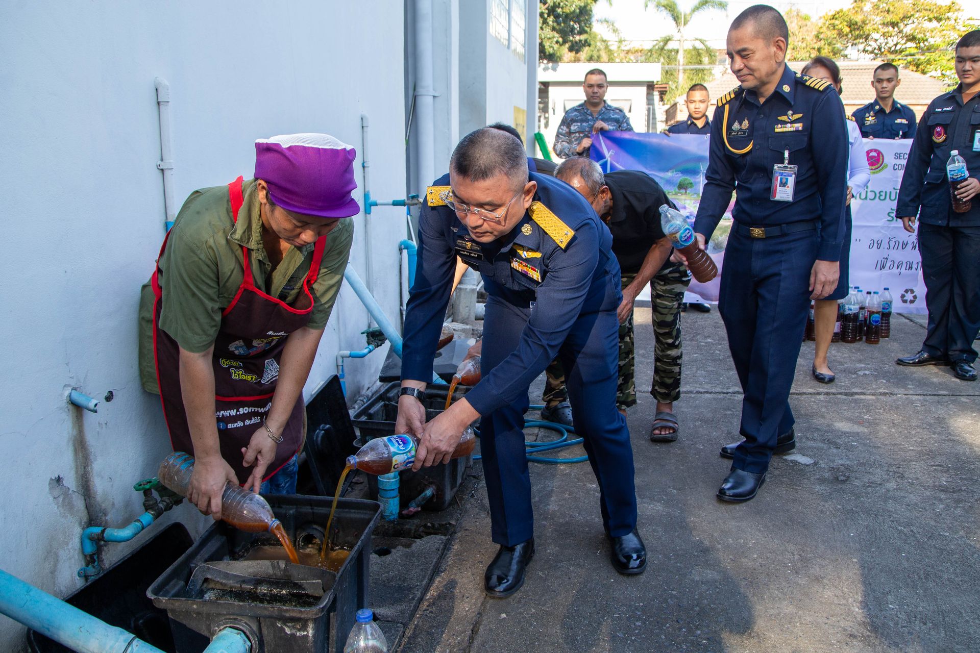 พลอากาศตรี มณเฑียร หมีโชติ รองผู้บัญชาการหน่วยบัญชาการอากาศโยธิน ได้นำข้าราชการ ร่วมเทน้ำหมักชีวภาพเพื่อบำบัดน้ำเสียและรักษาสิ่งแวดล้อม เนื่องใน “วันสิ่งแวดล้อมไทย ๔ ธันวาคม” ณ หน่วยบัญชาการอากาศโยธิน เมื่อวันที่ ๔ ธันวาคม 2568