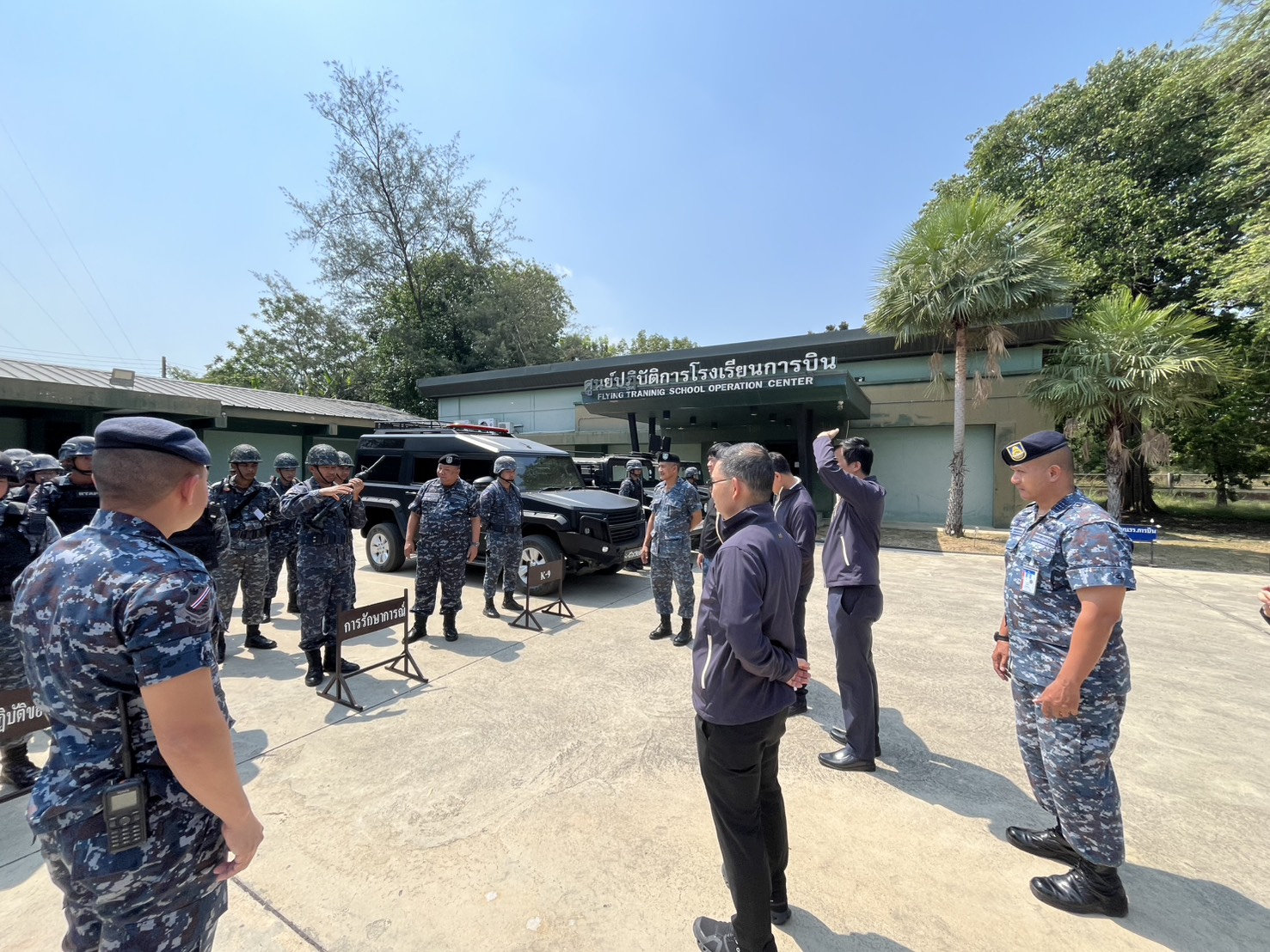 อย.ร่วมคณะ สทป.เยี่ยมชมการสาธิตการป้องกันฐานบิน ณ รร.การบิน